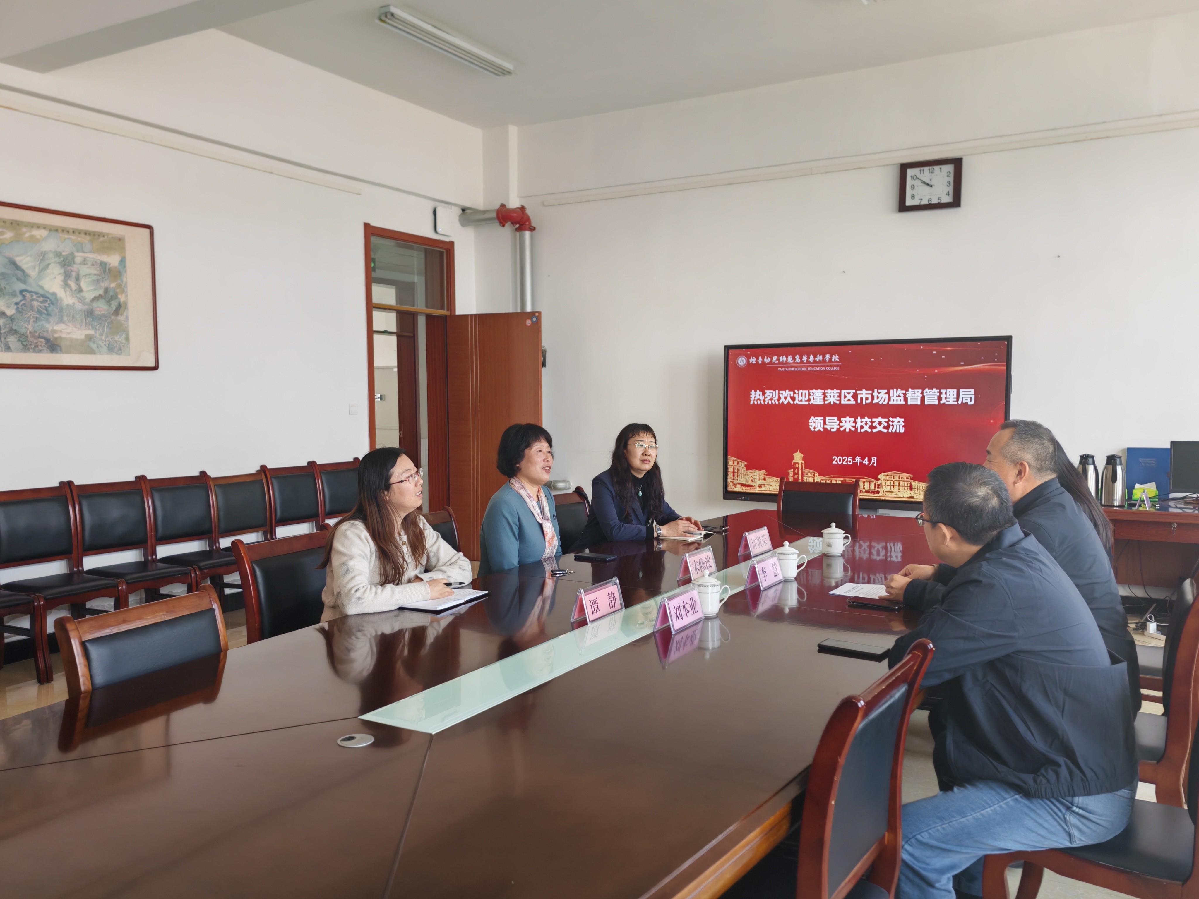 4月9日,蓬莱区市场监督管理局一行莅临我校,就高校专利规范化相关工作在办公楼416室开展交流座谈。